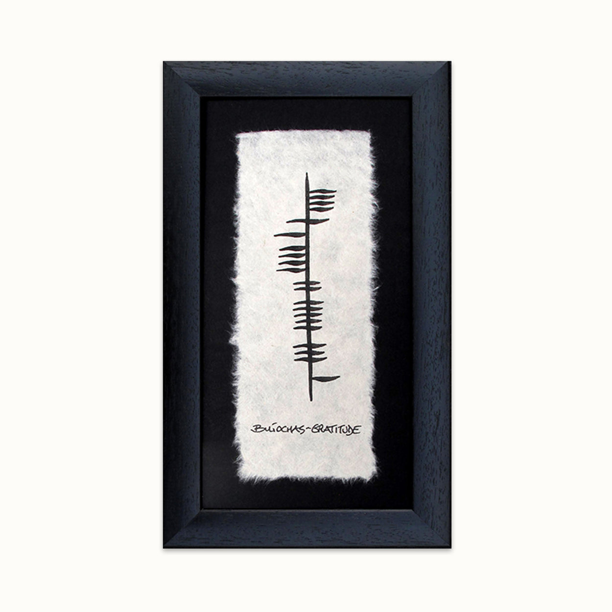 Gratitude - Buíochas hand-painted in Ireland’s ancient script ogham is a wonderful hand-made gift to show your appreciation for someone. Show your friend, family member or colleague thanks with this Gratitude ogham. It is the perfect thank you gift, it also works great for someone who is retiring.