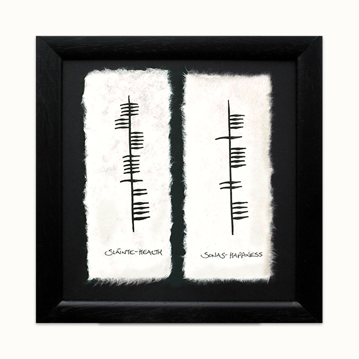 Health & Happiness go hand in hand. There is no happiness without good health. Health - Sláinte hand-painted alongside Happiness - Sonas in Ireland’s ancient script ogham is a beautiful gift suitable for all occasions. This piece is notably popular for weddings, engagements, anniversaries, new homes, retirements and significant birthdays.