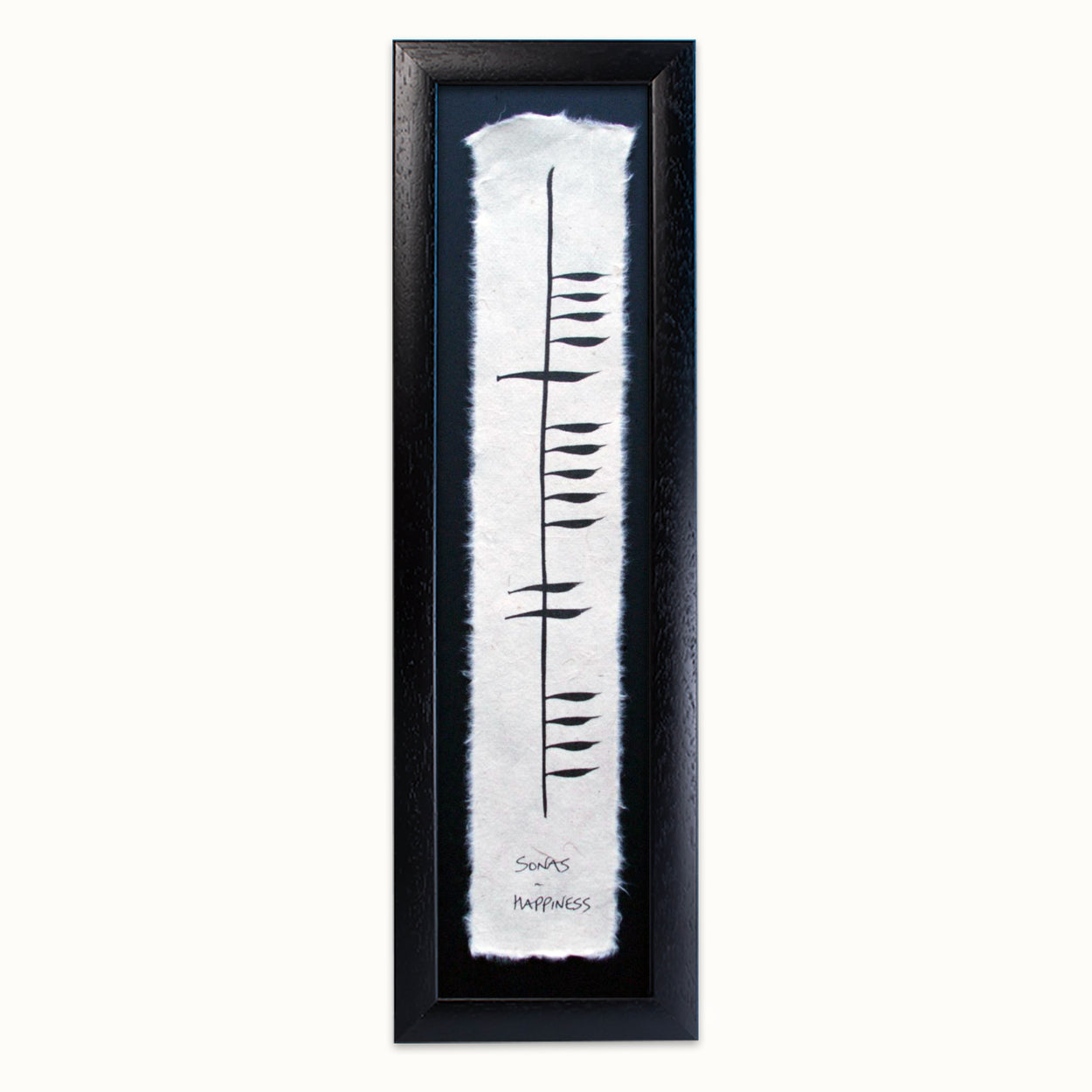Happiness - Sonas is enjoying the little things in life. Long Happiness hand-painted in Ireland’s ancient script ogham is a beautiful gift suitable for a number of occasions such as birthdays, new homes, weddings or new babies gifts. It is sure to put a smile on your face or lift someone’s mood who is feeling down.