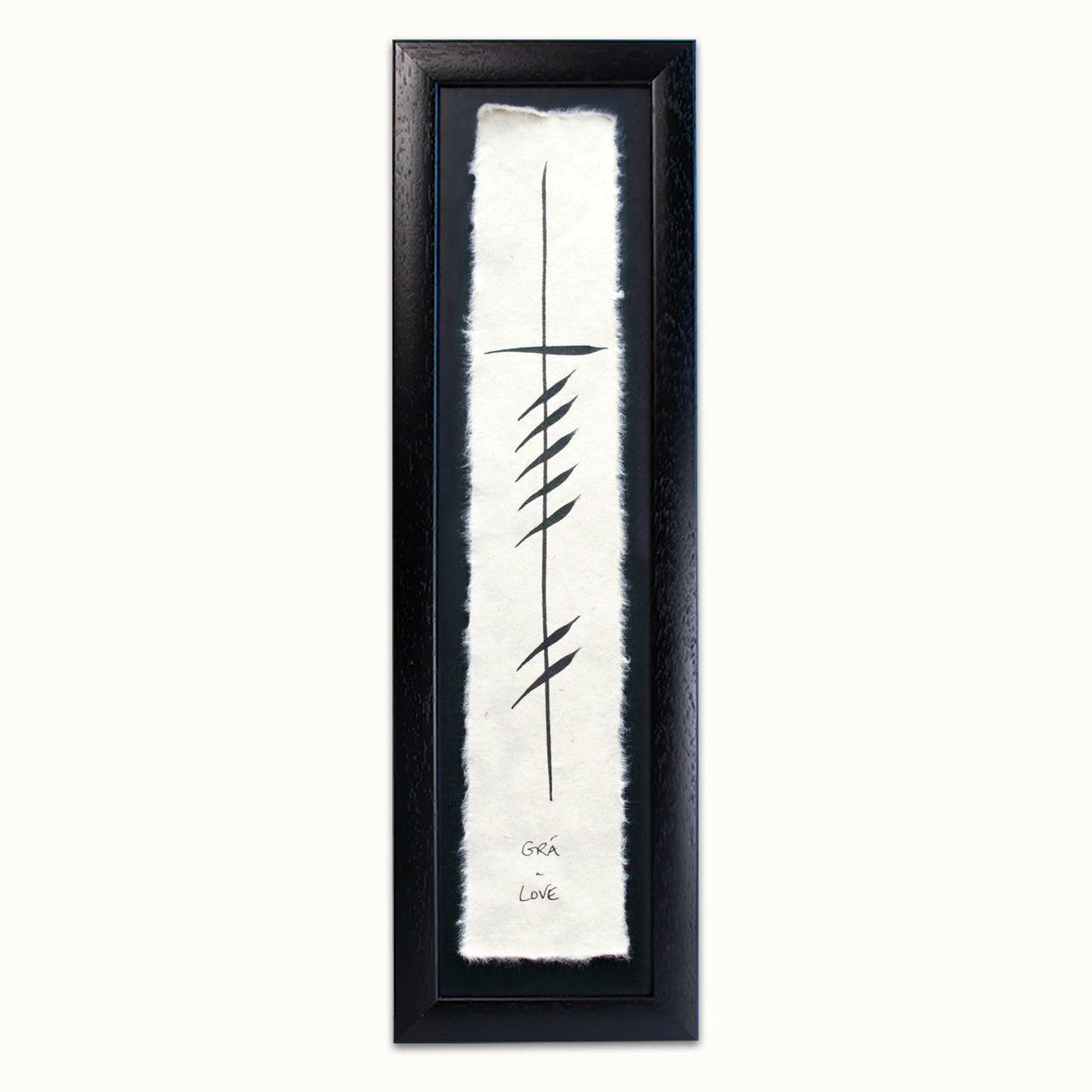 Love - Grá is something that we all need. Love hand-painted in Ireland’s ancient script ogham is a beautiful gift suitable for a number of occasions such as weddings, engagements, anniversaries, birthdays or new babies gifts. “You always gain by giving love!”