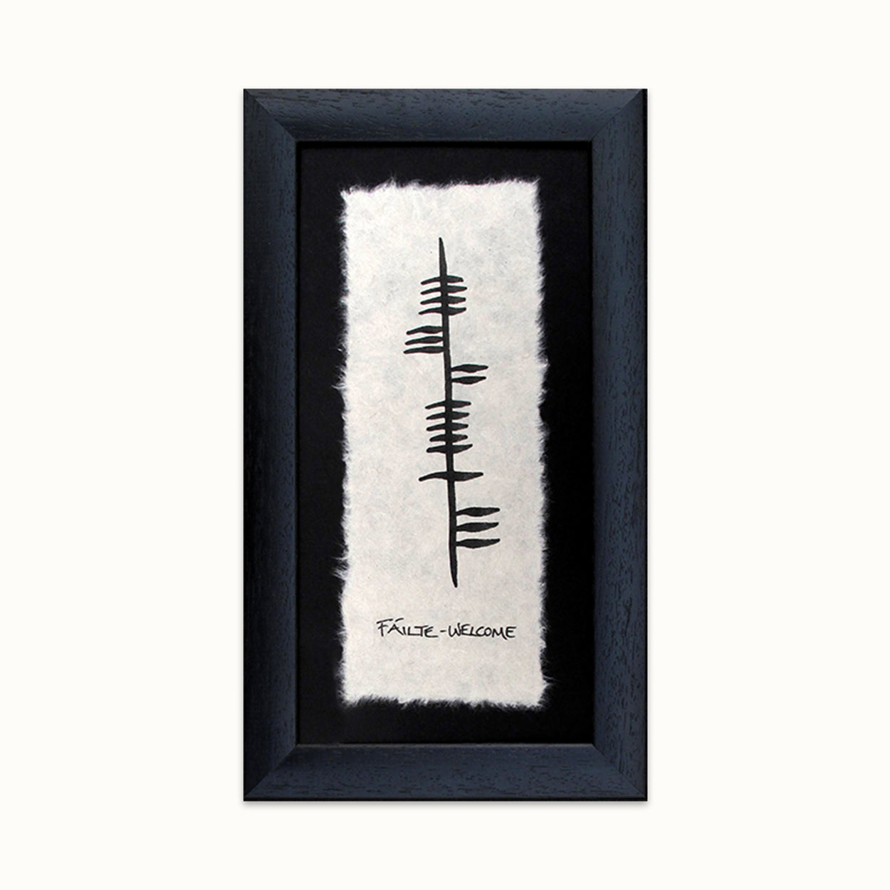 Welcome - Fáilte hand-painted in Ireland’s ancient script ogham is one of our most popular new homes gifts. Treat yourself or your friend to something special that will be treasured in your home for years to come. It looks great when hanging in your hallway to welcome your visitors. It is also a great gift to give to Irish abroad.