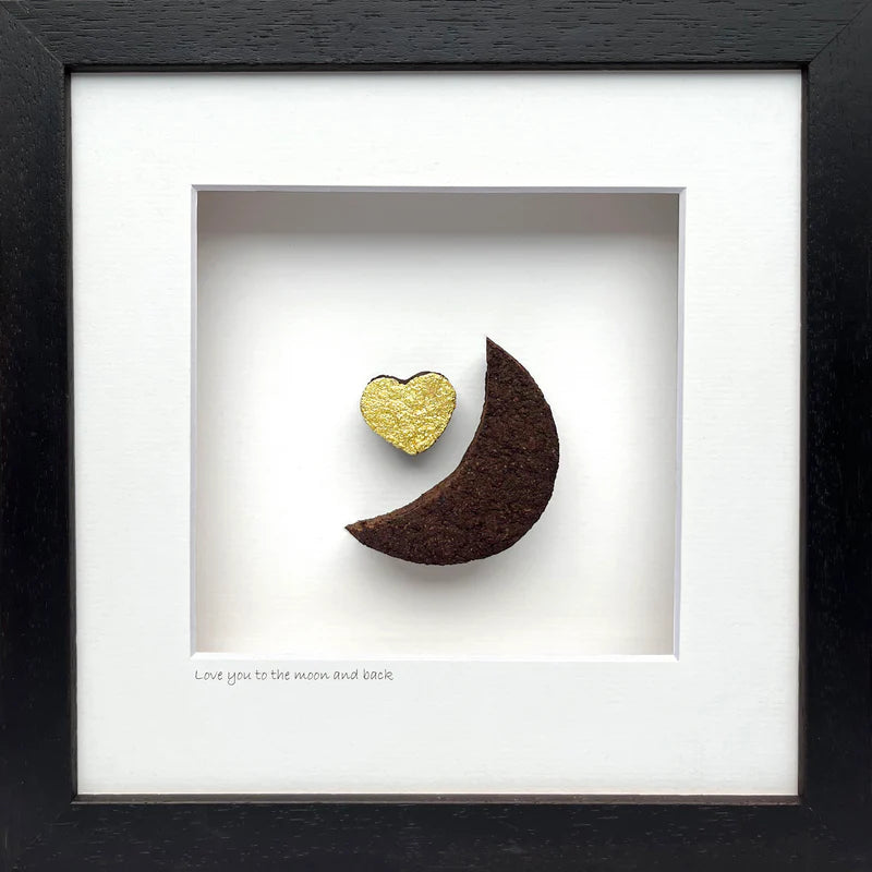 Love you to the moon and back is an expression of deep and lasting love. A beautiful wedding or engagement gift that is hand crafted in Ireland from real Irish bog. Also makes a great new baby gift!