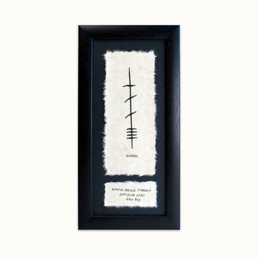 Ethel Kelly’s award winning range of hand painted Ogham Wishes continue to enchant and delight. At her traditional workshop in Knockcroghery village in County Roscommon, each Ogham Wish is individually painted by Ethel on hand made paper and beautifully framed in a contemporary black wooden frame.